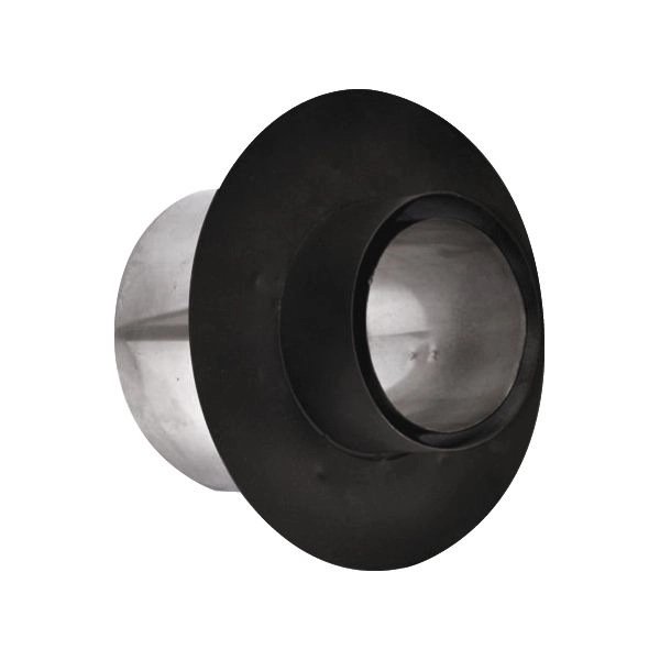 Curbside Delivery.See Shipping & Delivery PolicyThe adapter fits into the masonry wall; the black trim plate is used to cover the hole. The appliance end of the adapter connects directly to the 4" pellet pipe, and the chimney end connects directly to the 6" liner outlet. Includes 4" connector inside masonry adapter. •Strong and durable venting thanks to its outer wall in galvalume steel and its inner wall in stainless steel •Revolutionary gasket system that prevents leaks and does not require the use of silicone •Smooth-weld technology for virtually invisible seams • Precision formed ends for a better finish •Complies with NFPA 211, CSA B365, UL 641, CAN/ULC S609 and ULC/ORD C441 standards **Dimensions** A : 4.75" BØ : 4" C : 5.9" D : 9" E : 8"