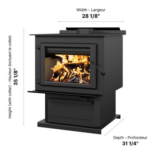 2,300 - 3,500 pi²Puissance thermique maximale-bûches de bois sec