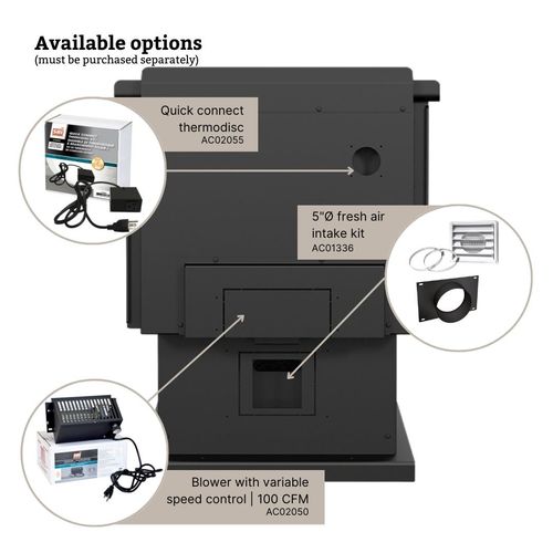 1,000 - 2,700 pi²Puissance thermique maximale-bûches de bois sec